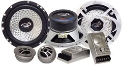 6.5-Inch Midrange DriverChromed Mica-Poly Cone Butyl Rubber Surround 140 Watts RMS/ 280 Watts Peak Frequency Response: 55-6KHz Impedance: 4 Ohms One Pair Tweeter:1-Inch Silk Dome Tweeter Neodymium Magnet 3 Mounting Options: Flush / Swivel / Surface or Angle Mount Frequency Response: 1.4-24KHz Impedance: 4 OhmsOne Pair Passive Crossover Network:Two - Way Passive Crossovers 12dB Octave Slope Gold Plated Connectors Fully-Protected Circuitry Accessories:Custom Grills Mounting Hardware Wiring Kit w/Diagram & Template